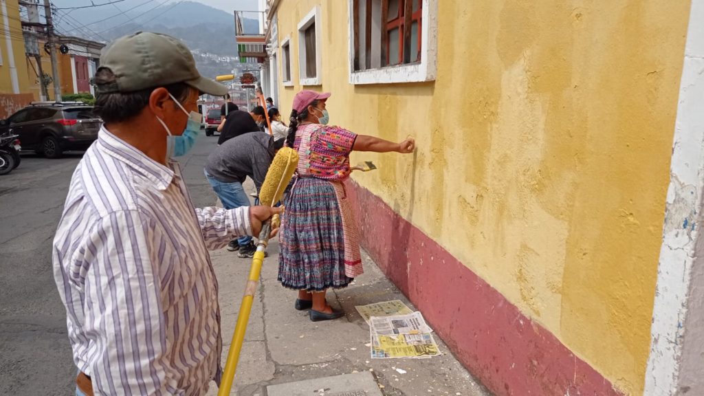 Padres de familia de la escuela de párvulos «Carlos A. Velásquez», ubicada en la 14 avenida «A» de la zona 1 de ciudad de Quetzaltenango, apoyan al mantenimiento del edificio educativo.