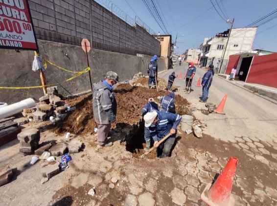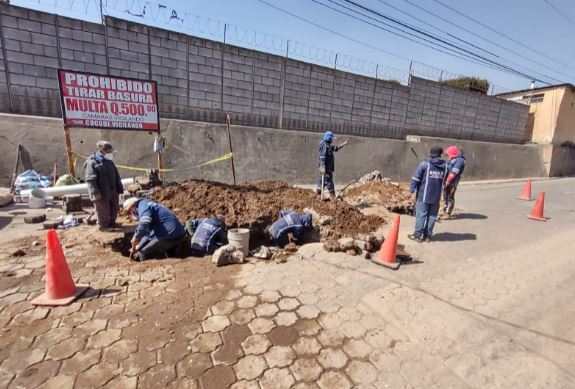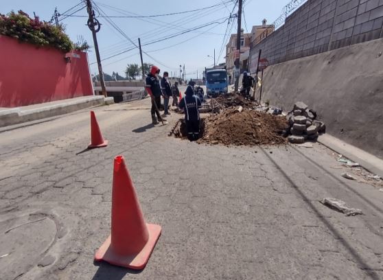 Este miércoles, personal de la Empresa Municipal Aguas de Xelajú (EMAX) trabaja en la reparación de tubería en la 1ª calle A y 8ª avenida, zona 9 de Quetzaltenango, barrio Garibaldi, donde se registró una fuga de agua.