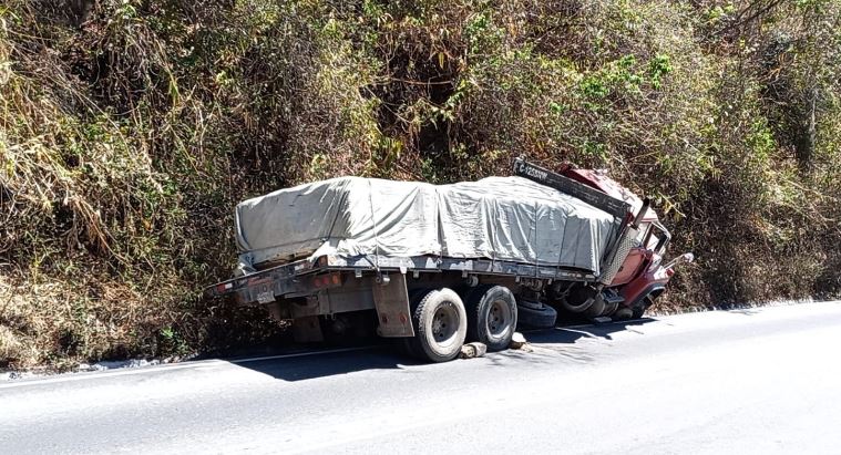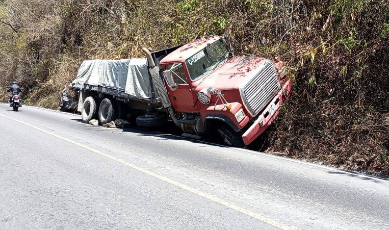 El camión permanece en el carril de Panajachel a Sololá y se espera la llegada de una grúa para movilizar el vehículo pesado.
