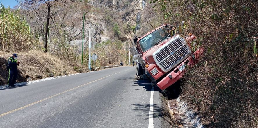 El piloto se encunetó y evitó caer a un precipicio. El accidente se registró en el kilómetro 144 de la ruta entre Panajachel y Sololá.