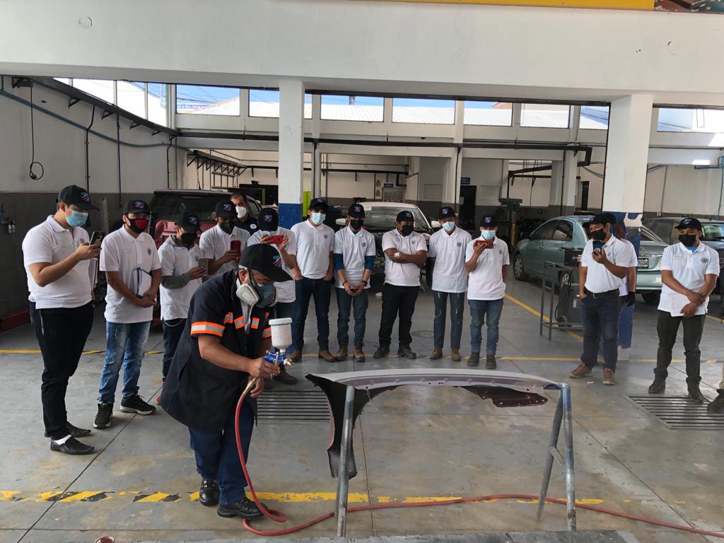 El fondo entintable es una novedad que han presentado, con lo que se pueden reutilizar las pinturas que se manejan en los taller, dentro de la capacitación también los estudiantes conocieron sobre técnicas de despistes y presenciaron la aplicación de un transparente de altos sólidos, que permite dar garantía de 5 años a la aplicación de la pintura.