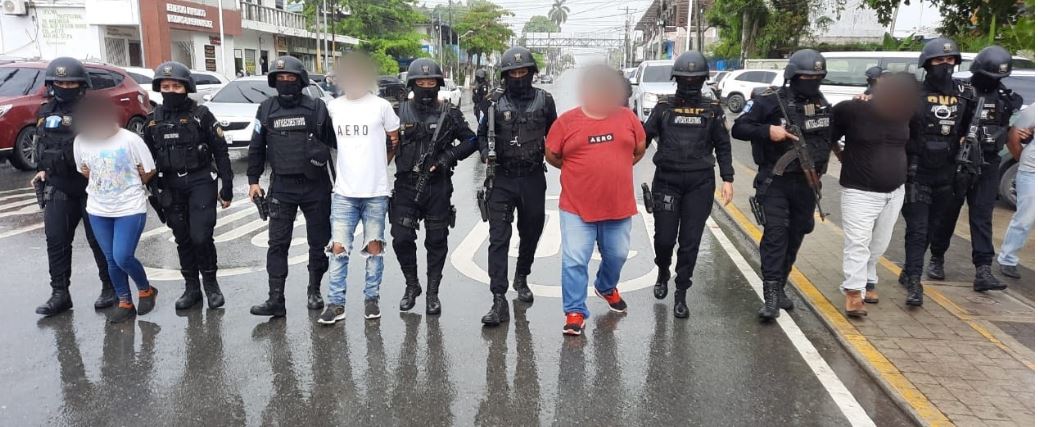 Este miércoles, agentes de la Policía Nacional Civil (PNC) arrestan en Puerto Barrios, Izabal, a cinco presuntos secuestradores —cuatro hombres y una mujer—.