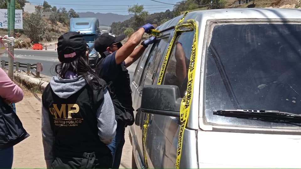 El Ministerio Público (MP) y elementos de la División Especializada en Investigación Criminal (DEIC) llegaron a recabar indicios en los negocios y luego al vehículo abandonado. La fiscal del MP explicó que en el lugar se localizaron 16 indicios y huellas, las cuales servirán como objeto de prueba para dar con los responsables.