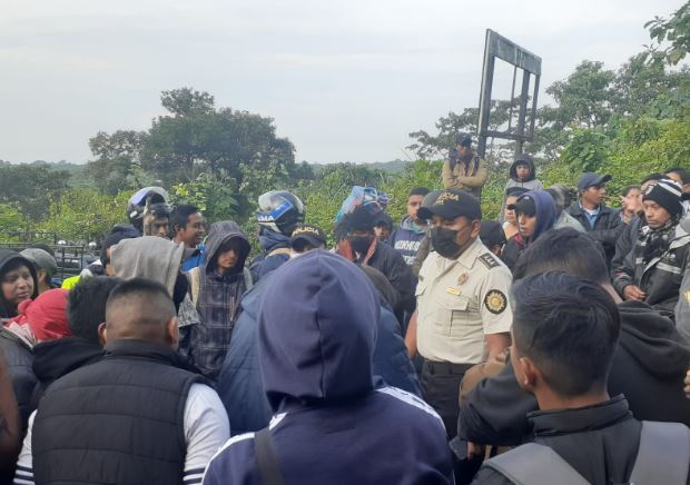 Los manifestantes y autoridades continúan con el diálogo para liberar la ruta. En el lugar se observa a 13 agentes, vestidos de gris perla, quienes brindan seguridad en el área.