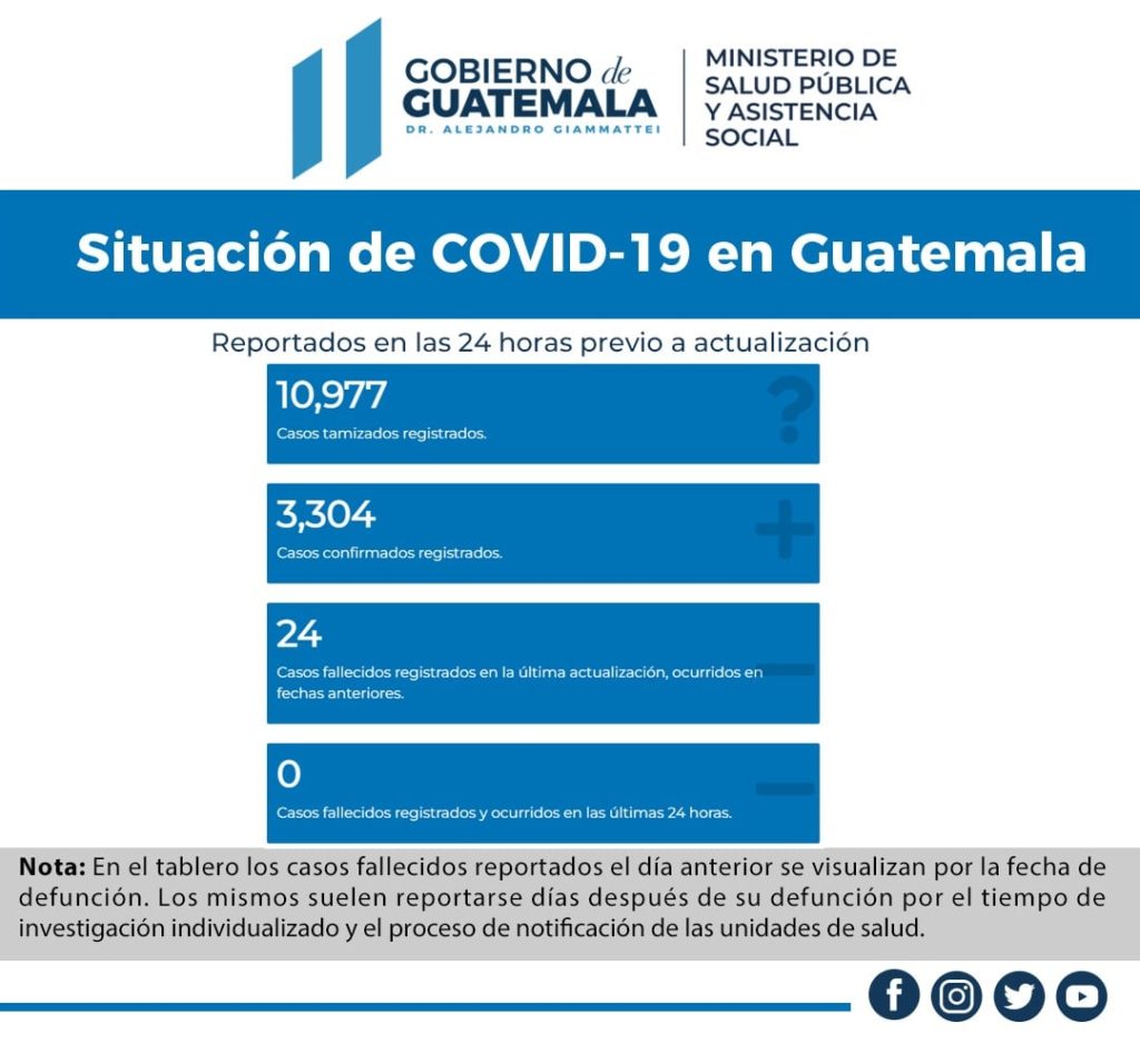 El Ministerio de Salud Pública y Asistencia Social (MSPAS), informa este 4 de febrero de 2022 los casos confirmados por laboratorio en el tablero Situación COVID-19 en Guatemala. Corresponde al 3 de febrero de 2022 de 00:00 a 23:59 horas.