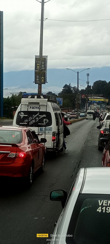 - Un microbús parece haber parado para abordaje de pasajeros, en la vía principal que conecta a La Esperanza con la rotonda de La Licorera, a la altura de Interplaza Xela.