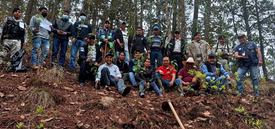 En la actividad de reforestación participan representantes del Ministerio de Ambiente y Recursos Naturales (MARN) y de la División de Protección a la Naturaleza (Diprona) de la Policía Nacional Civil (PNC).
