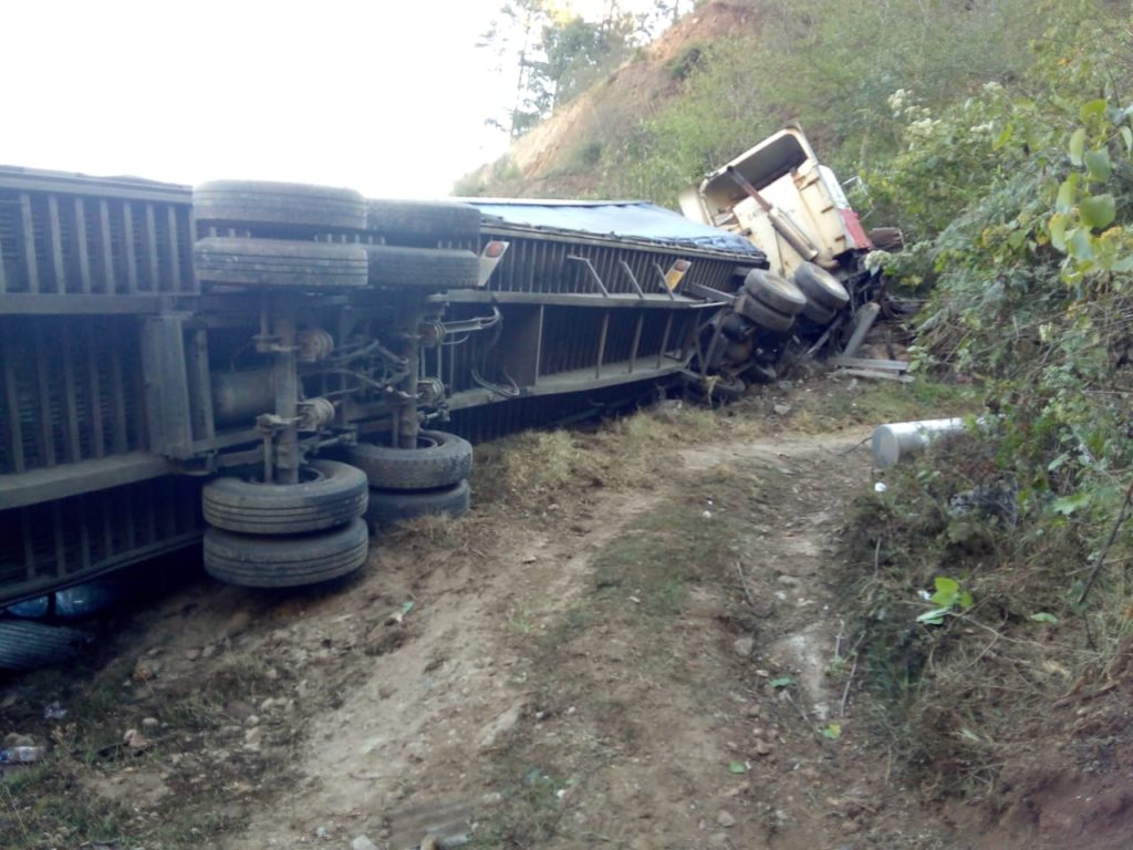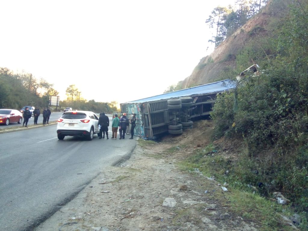Ninguno fue trasladado a algún centro asistencial, la unidad AD-135 de Bomberos Municipales Departamentales acudió con personal a bordo para atender esta emergencia. El vehículo pesado permanece volcado a un costado de la carretera, con sentido a la ciudad capital.