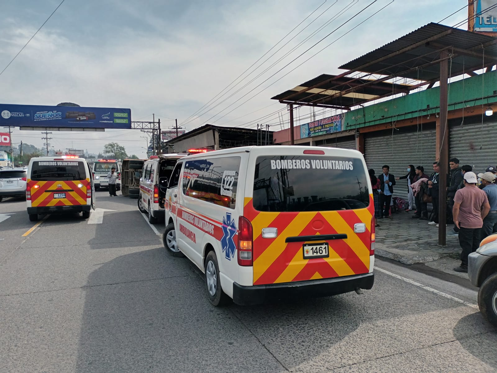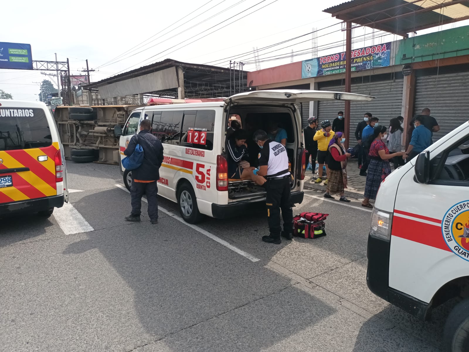 El accidente se registró en el kilómetro 193, límites de la autopista Los Altos y Salcajá, Quetzaltenango. Las personas heridas son originarias de Puerto Barrios, Izabal.