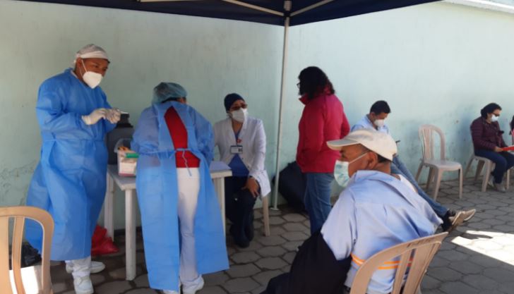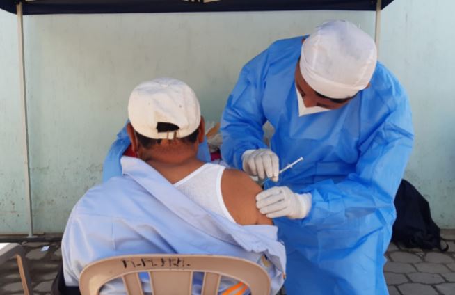 Este miércoles, personal del Instituto Guatemalteco de Seguridad Social (IGSS) vacuna contra el COVID-19 a empleados de la Empresa Municipal Aguas de Xelajú (EMAX).