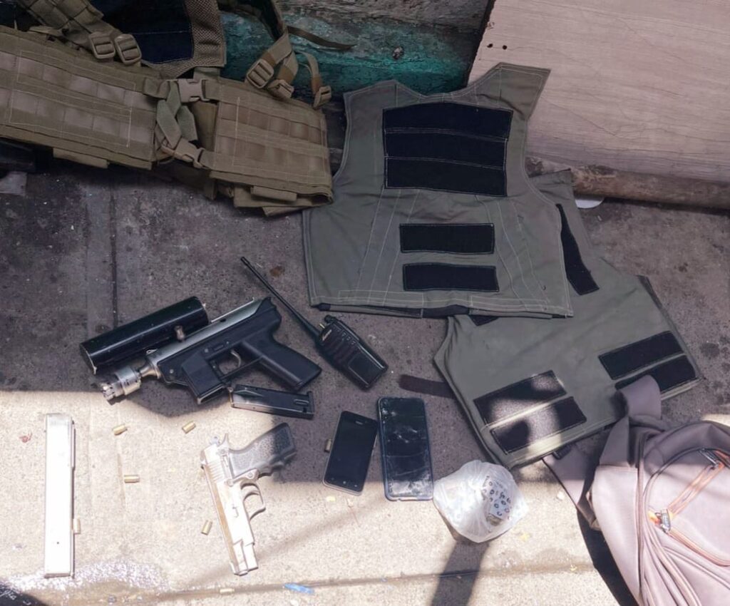 Les incautaron una subametralladora, con silenciador, una pistola, un chaleco antibalas, un chaleco porta medios, un radio transmisor, celulares y droga.