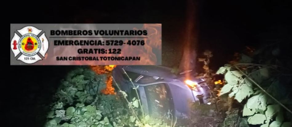 Bomberos Voluntarios de la 121 Compañía fueron alertados sobre el accidente en el kilómetro 174 de la CA1 ruta hacia Cuatro Caminos, San Cristóbal, Totonicapán.