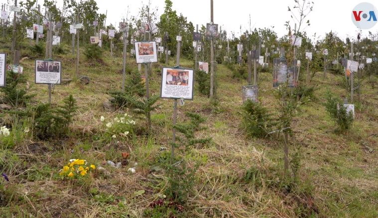 Cada árbol está acompañado de una placa blanca donde las familias honran a sus familiares con un mensaje en la naciente vegetación que poco a poco empieza a reclamar su lugar.