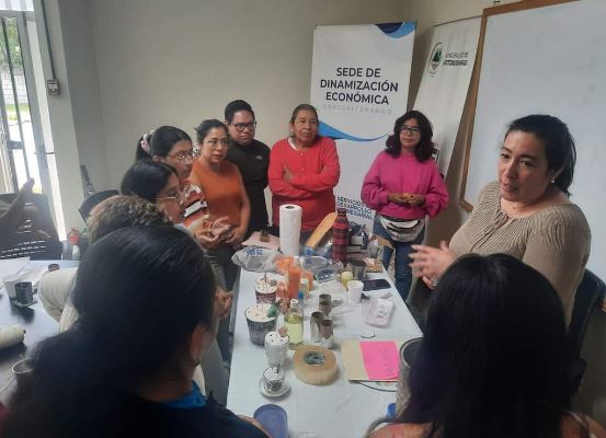 En el taller participan 20 emprendedoras, quienes buscan mejorar sus técnicas de elaboración de velas aromáticas.