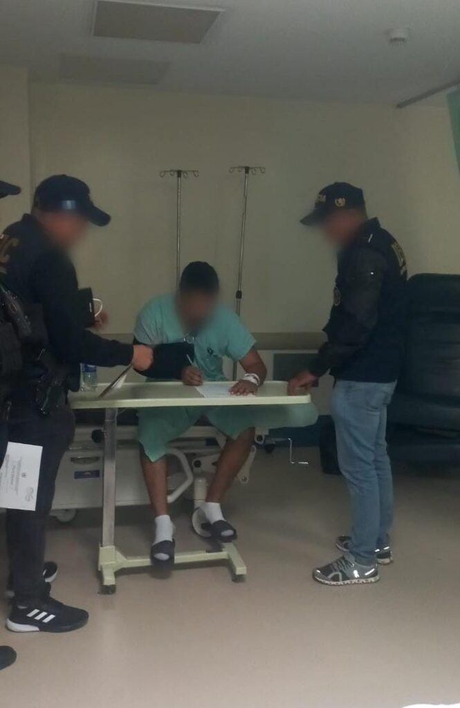 Investigadores de la DEIC llegaron al Hospital Nacional de Especialidades de Villa Nueva para darle cumplimiento a la orden en contra de José “N”, de 25 años, presunto marero 18.