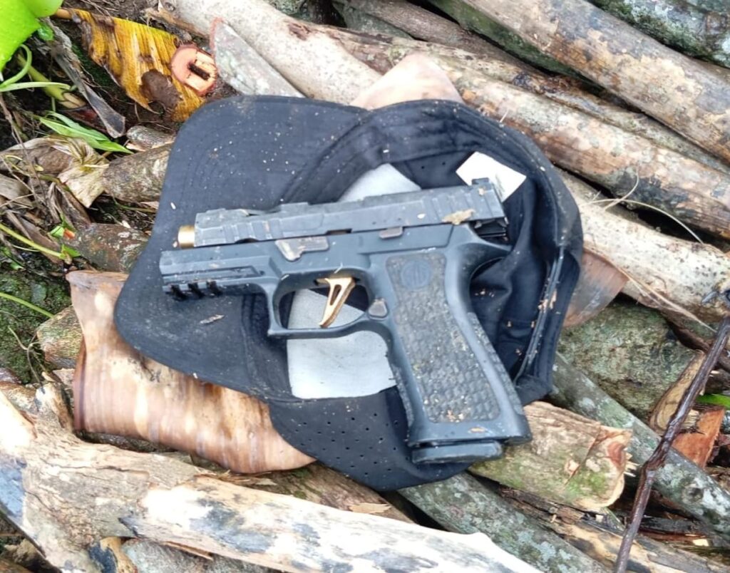 Agentes de la Policía Nacional Civil (PNC) capturan al presunto de asesinar a la mujer. Le incautan una pistola con la cual se presume realizó el ataque armado.