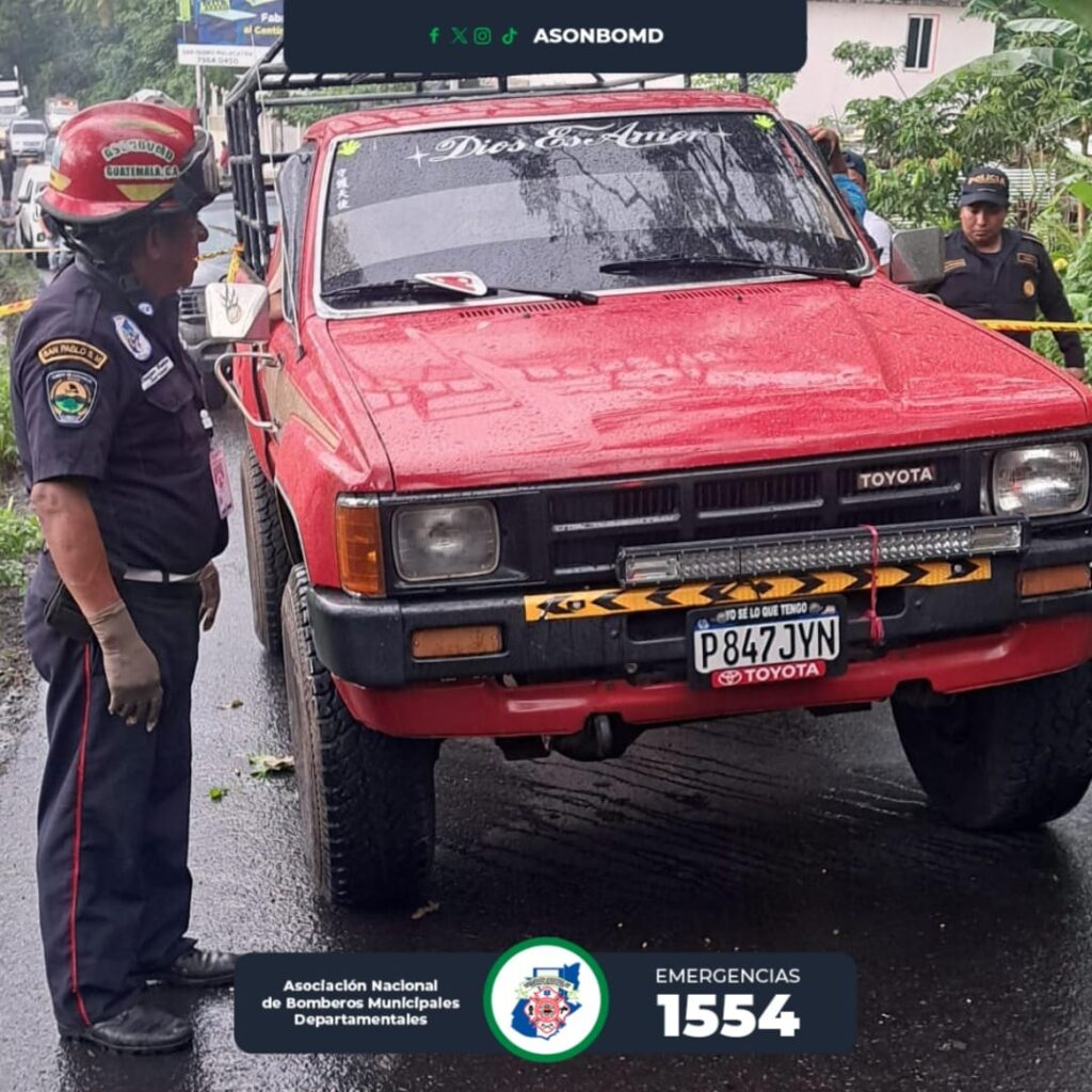 Bomberos Municipales Departamentales informaron que la mujer estaba en el picop P-847JYN. Ella era originaria del caserío Villa Hermosa de este municipio y presenta heridas de arma de fuego. Por el momento se desconocen las causas que provocaron el incidente armado.
