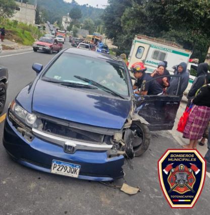 Este viernes un bus del transporte extraurbano y un vehículo colisionaron en el kilómetro 195 de la Ruta Nacional hacia Totonicapán.