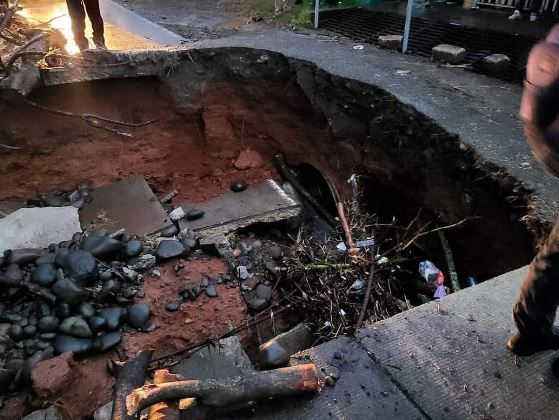 Un agujero de grandes dimensiones se formó en la carretera principal que comunica Génova Costa Cuca, Quetzaltenango, con varias comunidades de San Miguelito y el Parcelamiento Caballo Blanco, Retalhuleu. El tramo colapsó por las intensas lluvias de las últimas horas.