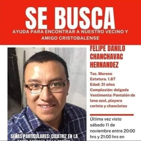La familia reportó que Chanchavac desapareció, el 11 de noviembre de 2023. Por el momento se desconocen más detalles del caso.