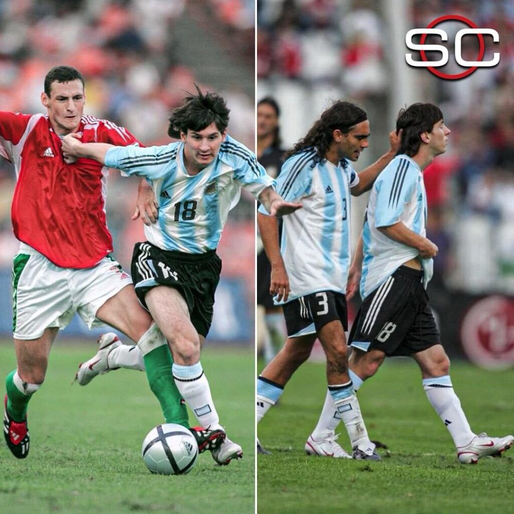 2005: En Budapest, en un partido entre la local Hungría y Argentina, Lionel Messi ingresó de cambio por Lisandro López marcando su debut con la Selección Mayor de su país.