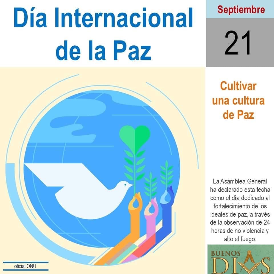 En el año 1981 la Asamblea General de las Naciones Unidas (ONU) promulgó el 21 de septiembre como el Día Internacional de la Paz, una fecha dedicada a conmemorar los ideales de paz de cada pueblo y cada nación, con especial énfasis en el desarrollo social y económico de las naciones en diversas facetas: pobreza, hambre, salud, educación, cambio climático, igualdad de género, agua, saneamiento, electricidad, medioambiente y justicia social.