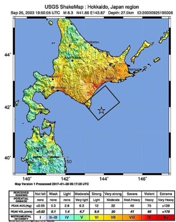2003: En Japón, la costa de Hokkaidō es sacudida por un terremoto de 8.0 grados.