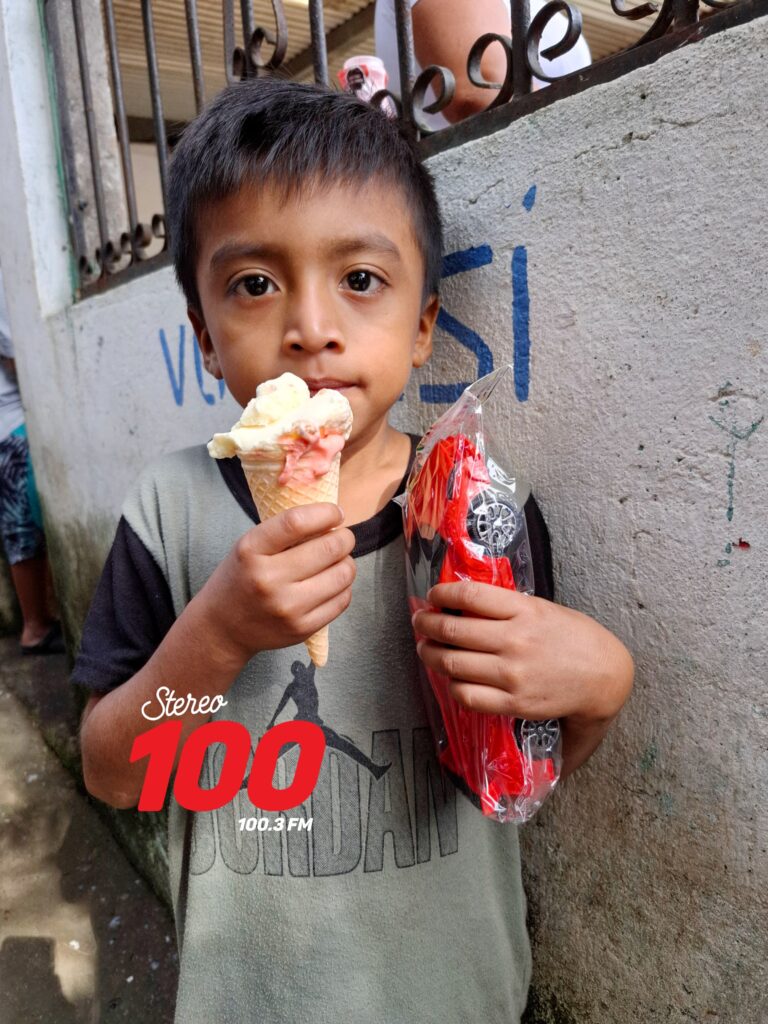 En la visita llevan juguetes y helados a niños del área rural —en esta ocasión fueron cerca de 1 mil 400 menores de edad beneficiados—. El tour es organizado por la comuna de Santa Cruz Muluá.