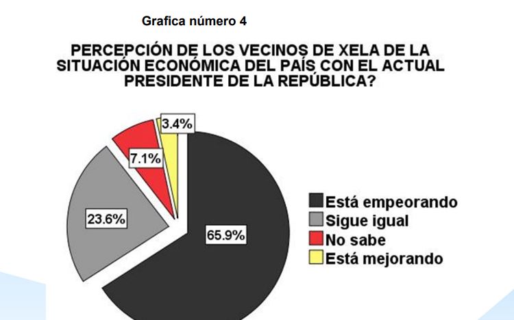 También consultaron sobre la percepción de los vecinos de la situación económica del país con el actual presidente de Guatemala, Bernardo Arévalo. Los resultados fueron los siguientes: