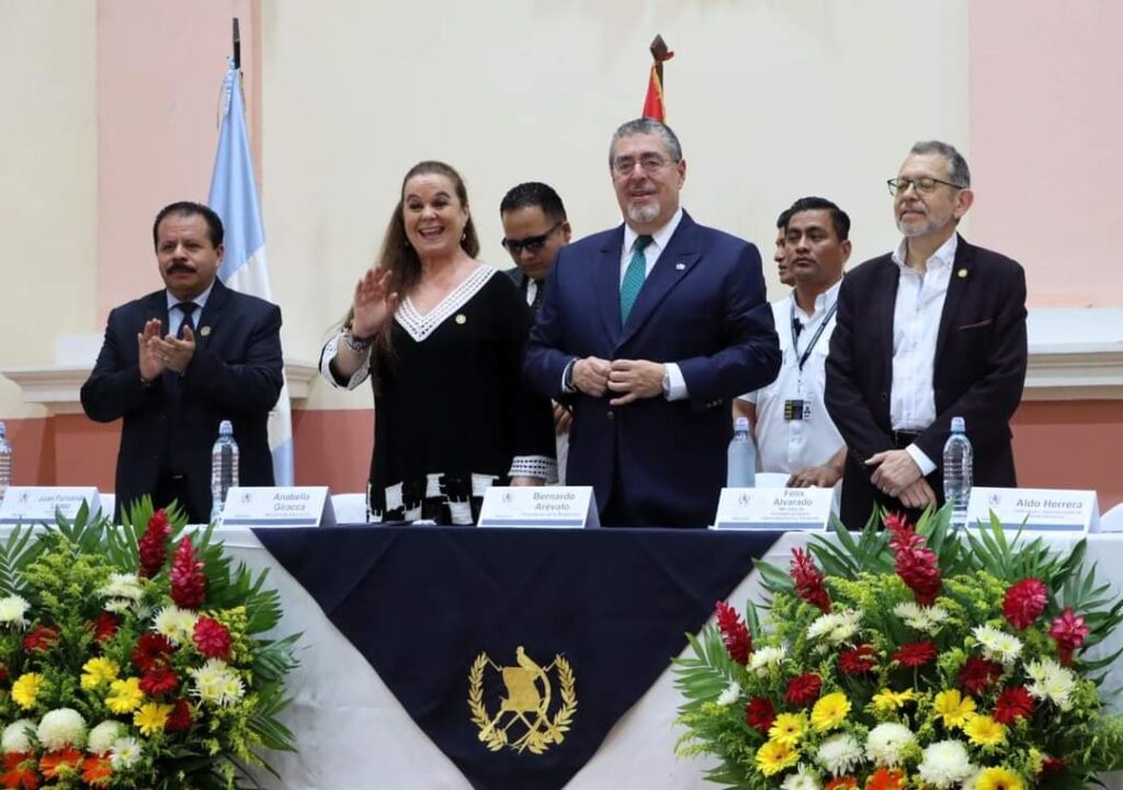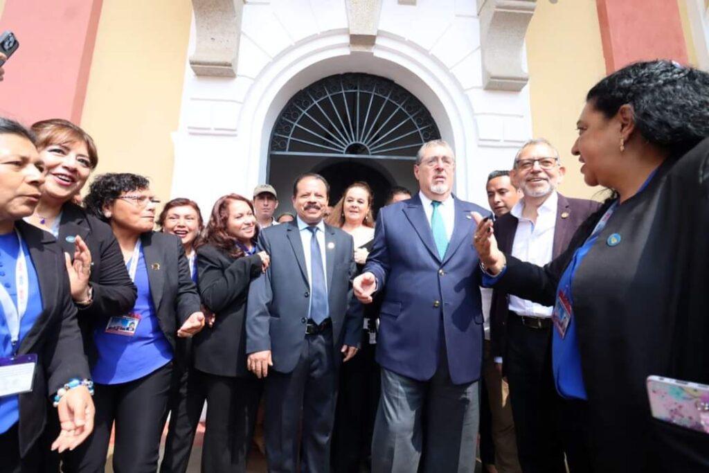 Este viernes, el presidente de Guatemala, Bernardo Arévalo, y la ministra de Educación, Anabella Giracca, participan en el acto de inauguración de los trabajos de remozamiento en el Instituto Normal para Varones de Occidente (INVO), en la zona 3 de Quetzaltenango.