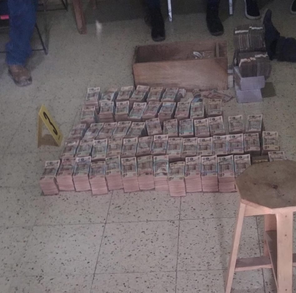 En un inmueble ubicado en el barrio El Centro se localizaron Q 8,540,378.35, una pistola y se capturó a Juan “N” de 34 años, por no poder demostrar la procedencia de dicho dinero, esta persona fue trasladada a un centro asistencial bajo custodia policial, por posibles quebrantos de salud.