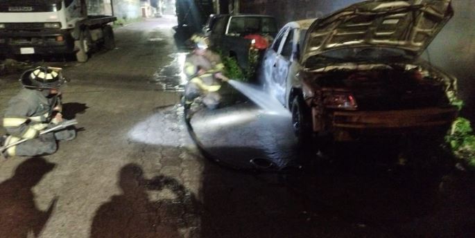 El primer incendio se registró, a las 23.33 horas, en la 4ª avenida y 9ª calle, zona 2 de Xela, donde quedó destruido un vehículo sedán.