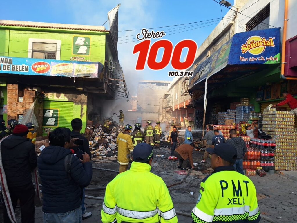 Este lunes, por causas que se investigan, dos negocios que almacenaban cohetillos y productos de consumo diario se incendiaron en la 7ª calle y 26 avenida, zona 3 de Quetzaltenango, Mercado Terminal Minerva.