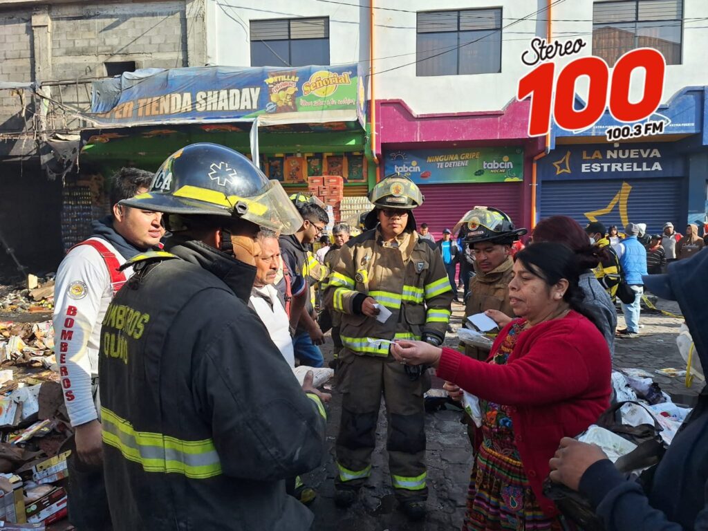 Juana Cucum, familiar de uno de los propietarios de los negocios que se incendiaron en la Terminal Minerva, zona 3 de Quetzaltenango, agradeció a los socorristas por el trabajo para sofocar las llamas.