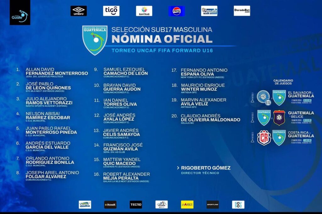 El jugador juvenil de Xelajú MC, Claudio Andrés de Oliveira Maldonado, es el único quetzalteco convocado a la Selección Nacional de Fútbol de Guatemala Sub 16, la cual participará en el torneo de UNCAF FIFA que iniciará el próximo 17 de mayo en Costa Rica.
