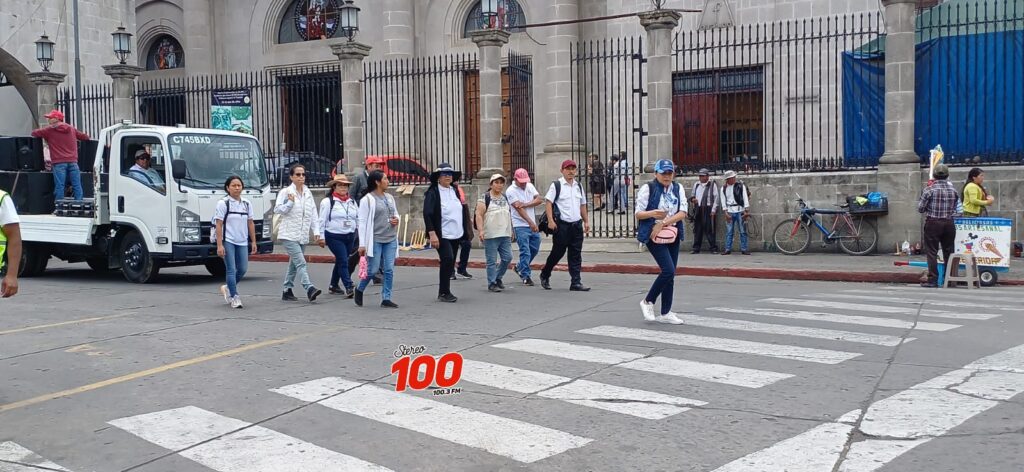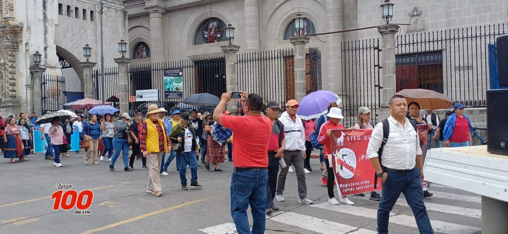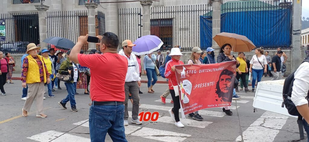 Este viernes, integrantes del Magisterio en Quetzaltenango participan en marcha en el Parque a Centroamérica, zona 1 de Xela.