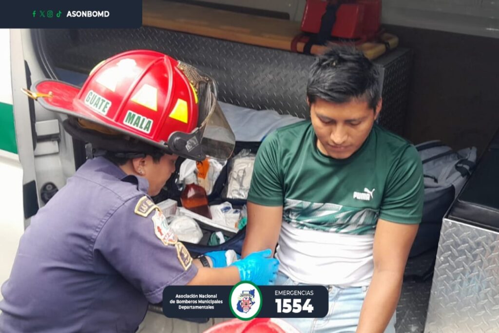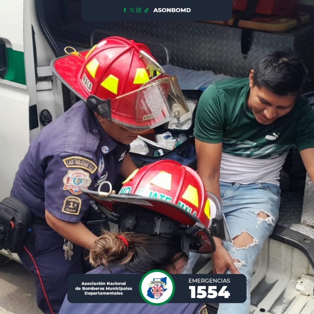 Este martes, Bomberos Municipales Departamentales del Cantón Las Delicias, Colomba Costa Cuca, Quetzaltenango, acuden a la Comunidad Agraria Las Mercedes y le brindan atención prehospitalaria a Luis Gabriel García Barrios, de 25 años, residente en el caserío El Coco Colomba Costa Cuca.