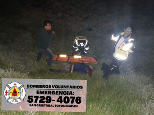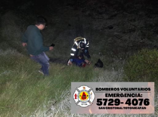 Este miércoles en la madrugada Bomberos Voluntarios de la 121 Compañía de San Cristóbal, Totonicapán, acudieron al kilómetro 188 de la circunvalación rumbo a la Rotonda del Emigrante, donde un motorista se accidentó y murió cuando fue trasladado al Hospital Departamental de Totonicapán.