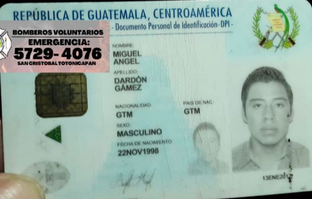 Agentes de la Policía Nacional Civil (PNC) indicaron que en la escena encontraron documentos a nombre de Miguel Ángel Dardón Gámez. El hombre tiene un tatuaje.