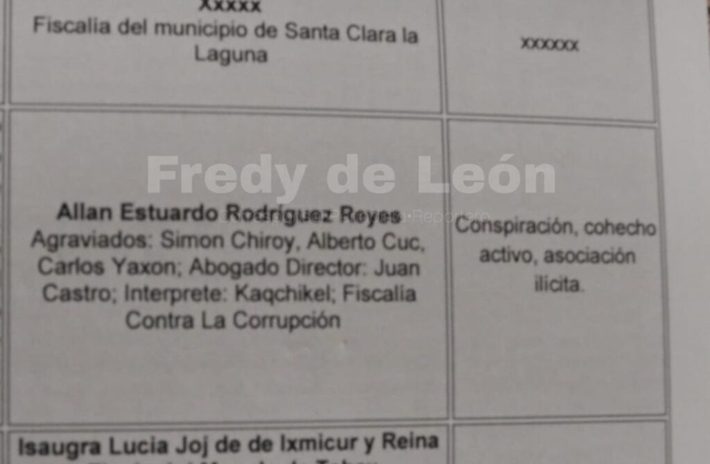 Este jueves, a las 13.30 horas, está programada una audiencia en el Juzgado de Primera Instancia Penal de Sololá, en contra del diputado distrital por este departamento, Allan Rodríguez Reyes, a quien se le acusa de haber cometido los delitos de cohecho pasivo, asociación Ilícita y conspiración.