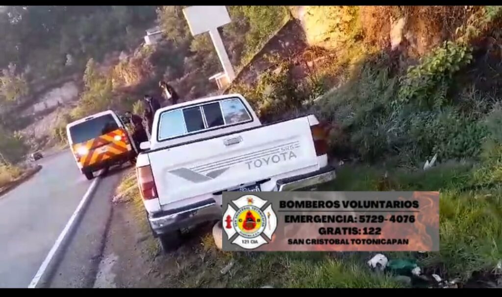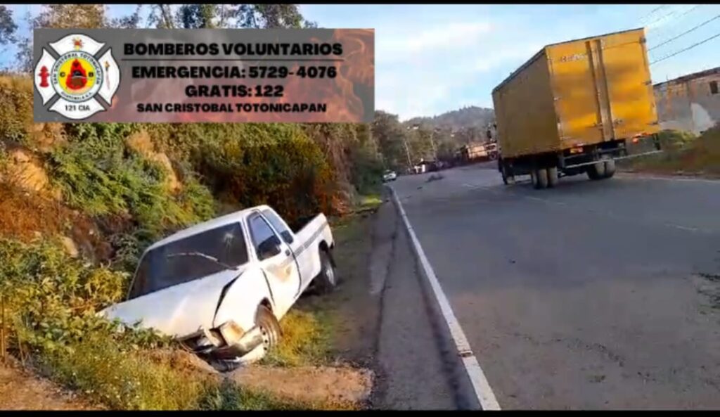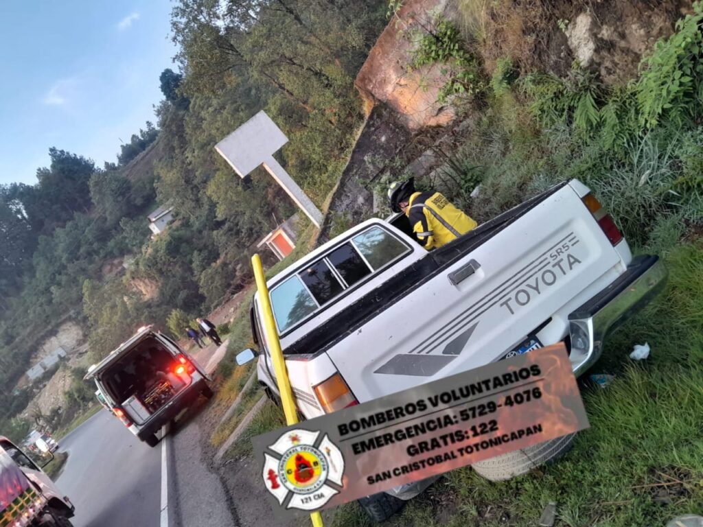 Este viernes un picop se empotró en un paredón en el kilómetro 210 de la ruta CA-1, entre Huehuetenango y San Cristóbal, Totonicapán.