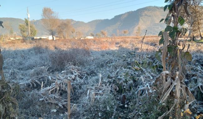 En Cantel, Quetzaltenango, vecinos reportan escarcha en campos por la helada de este viernes.