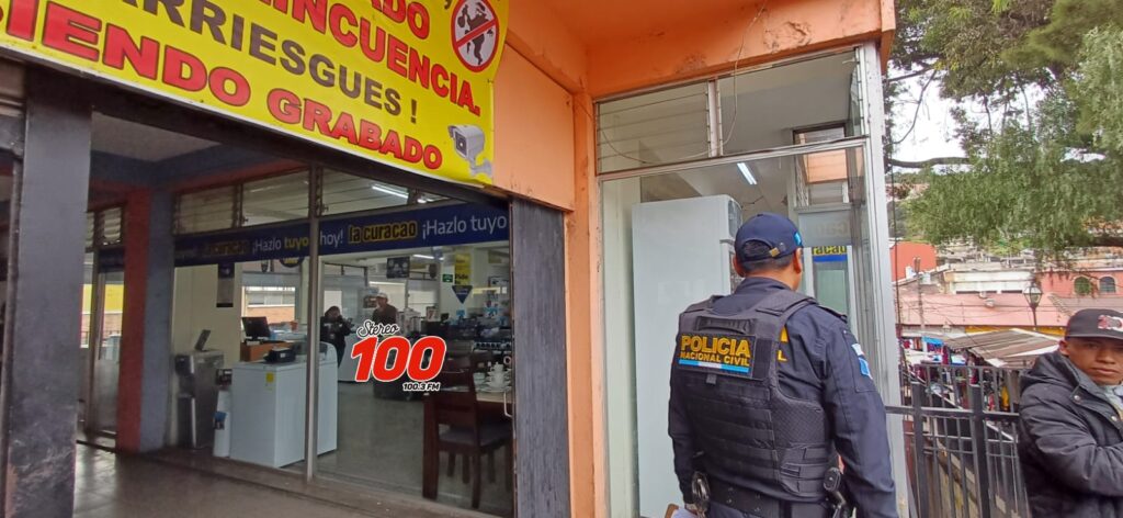Este lunes, agentes de la Policía Nacional Civil (PNC) acuden a un comercio dedicado a la venta de electrodomésticos, en el Centro Comercial Municipal, zona 1 de Quetzaltenango, por reporte de robo.
