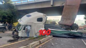 Tráiler cae de paso a desnivel y motorista se salva de morir