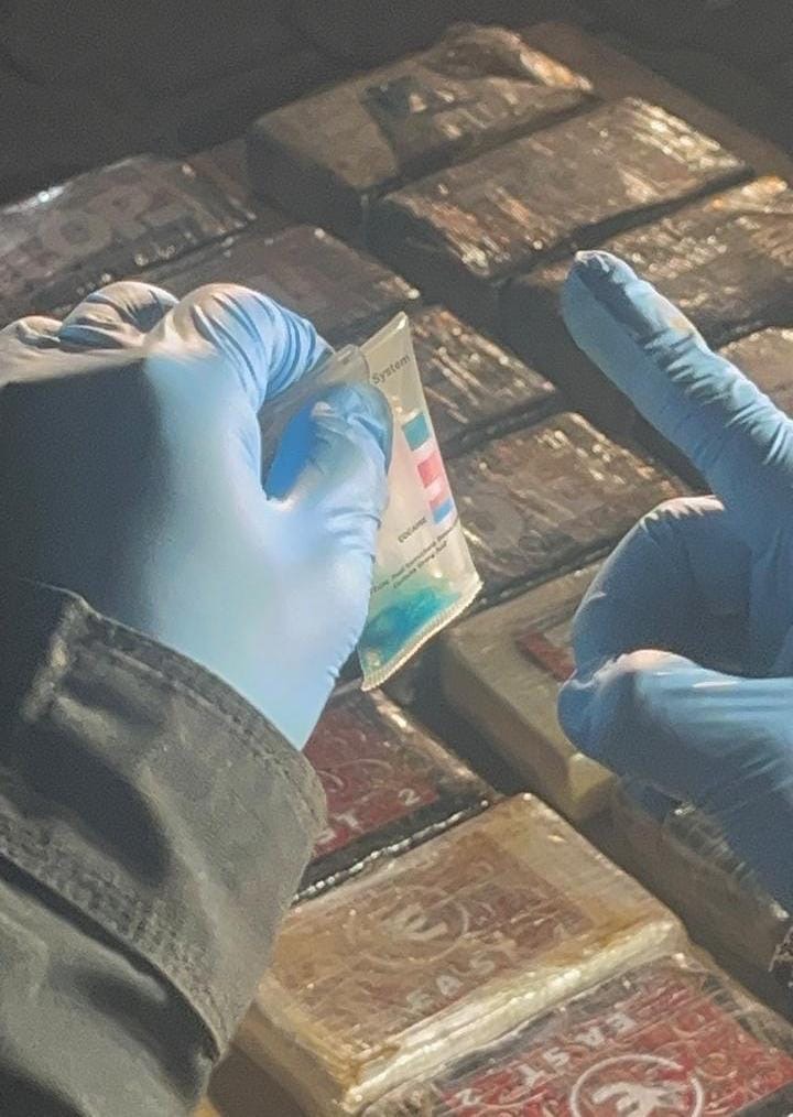 40 paquetes estaban ocultos en una caleta en el tanque de combustible y uno más en la puerta del copiloto, las pruebas de campo dieron resultado presuntivo positivo para cocaína.