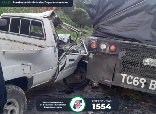 Este lunes tres personas resultaron heridas cuando el picop en el que viajaban colisionó con la parte trasera de un camión con plataforma abierta. El accidente de tránsito fue en el sector conocido como Tierra Blanca, aldea Las Tapias, de Tejutla, San Marcos.