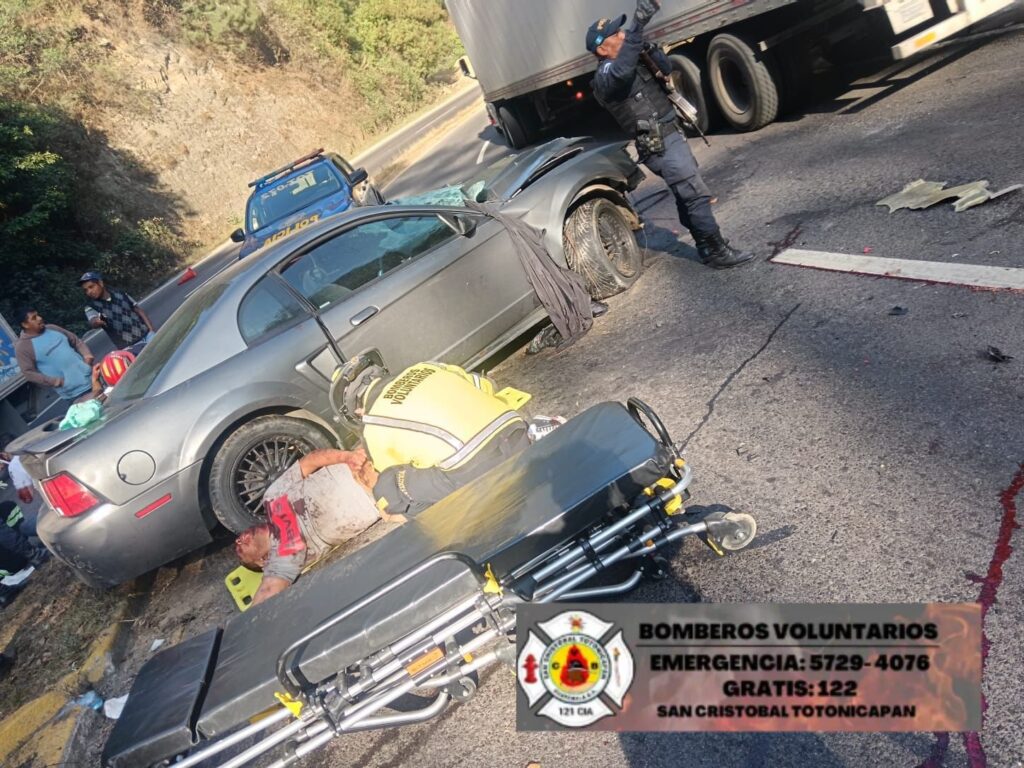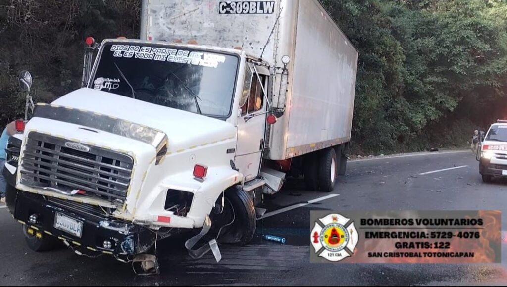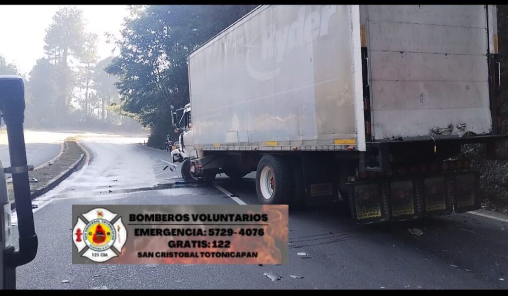 Este martes, un camión y un vehículo colisionaron en el kilómetro 174 de la CA-1 Occidente, ruta que conduce de Cuatro Caminos, San Cristóbal, Totonicapán, a la capital (municipio de Guatemala).