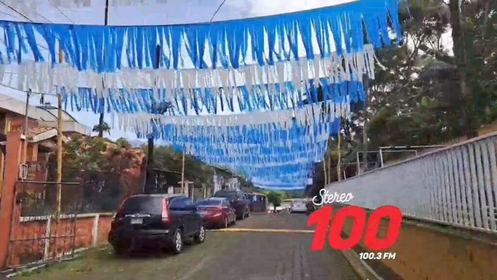 Chalinas de color azul y blanco, así como Banderas de Guatemala son las que dan vista a dicho lugar.