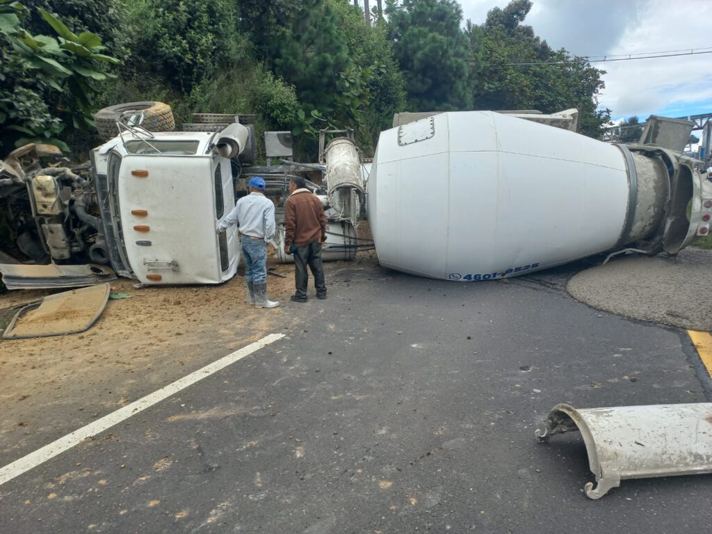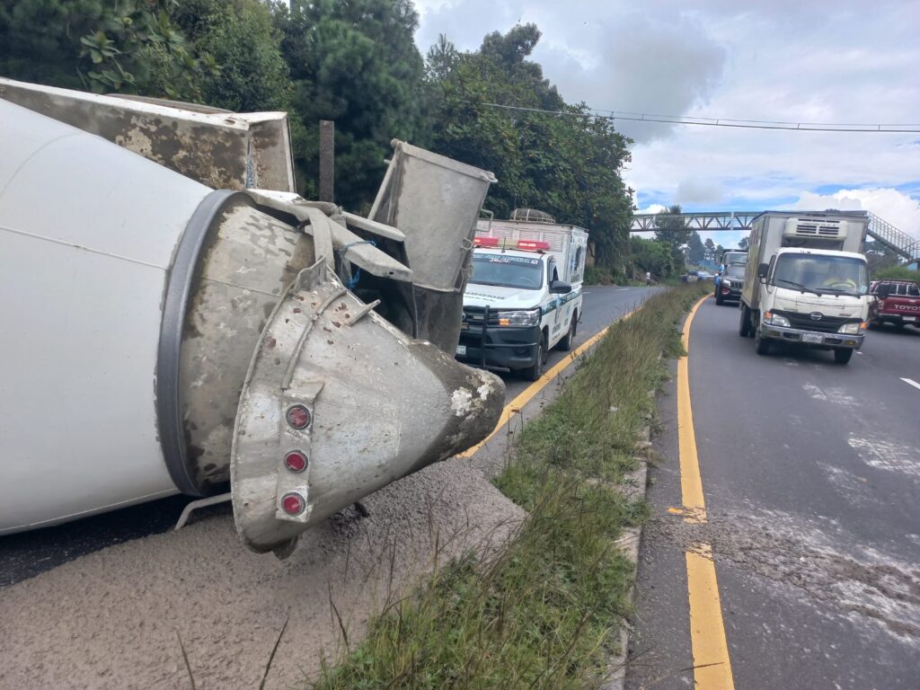 Este miércoles el piloto de un camión, el cual transportaba material de construcción, volcó en el kilómetro 136 de la ruta Interamericana, jurisdicción de la aldea Chaquijyá, Sololá.