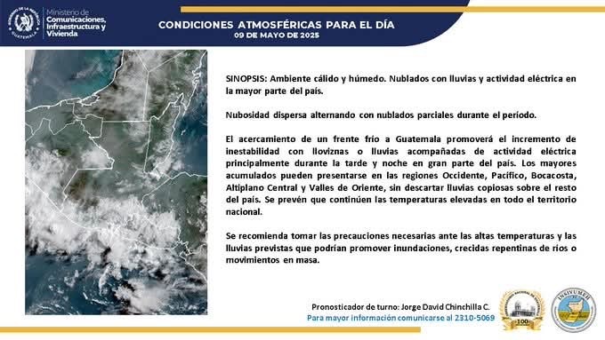 El acercamiento de un frente frío a Guatemala promoverá el incremento de inestabilidad con lloviznas o lluvias acompañadas de actividad eléctrica durante la tarde y noche en gran parte del país.